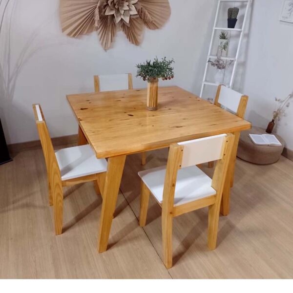 Mesa 1.0 x 1.0 mas 4 sillas Nordicas lustre paraiso