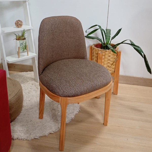 Silla construida en madera paraíso lustra natural y respaldo tapizado